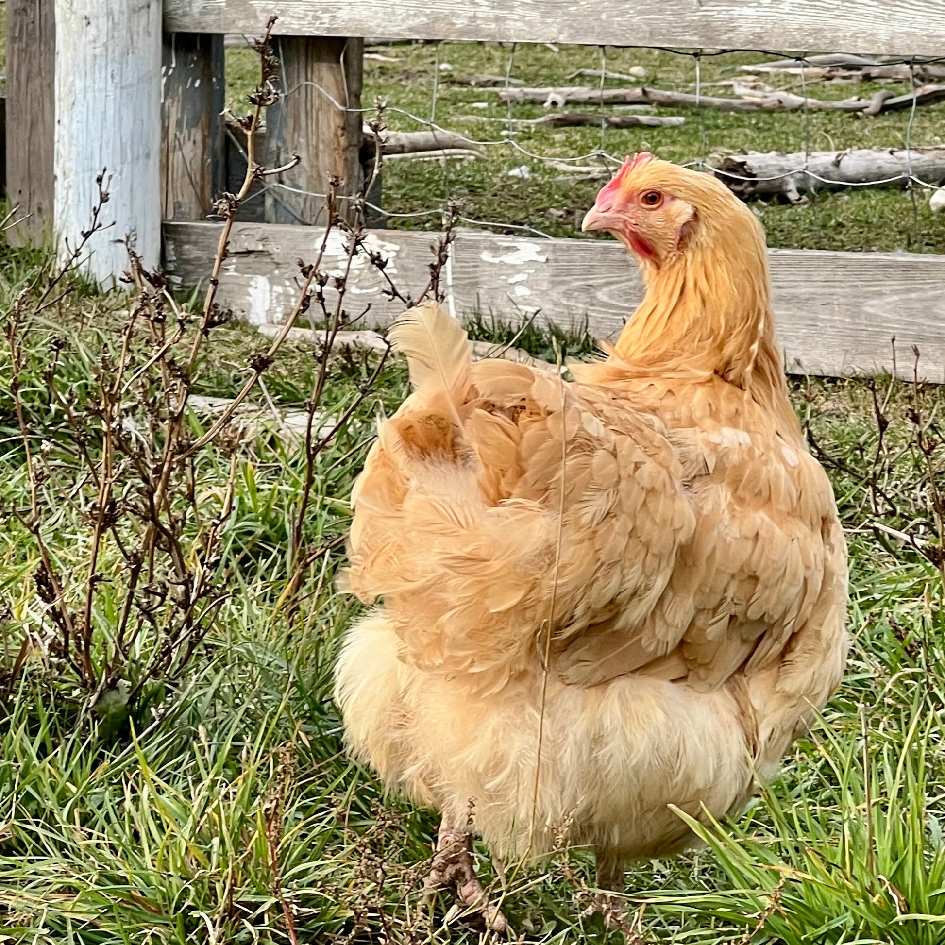 Originally developed as a dual-purpose breed, Buff Orpingtons are both large and productive, offering a beautiful balance between egg and table value. They have a broad, heavyset body that sits low to the ground, and their full, fluffy feathers give them a rounded, elegant appearance.